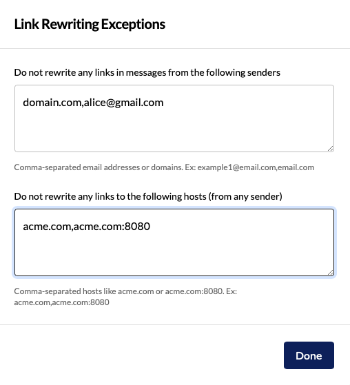 Create exceptions when specific links break or cause problems, not as a general allowlist. Exceptions prevent INKY from rewriting the link entirely.