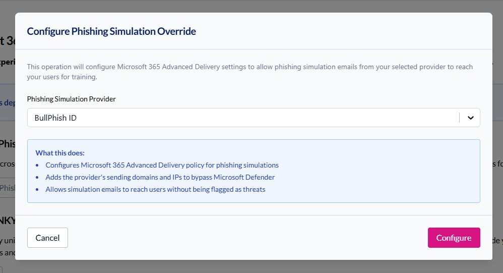 For Microsoft 365 environments, simulation emails must be whitelisted in M365's Advanced Delivery settings. Without this, M365 may block simulations before they reach INKY.