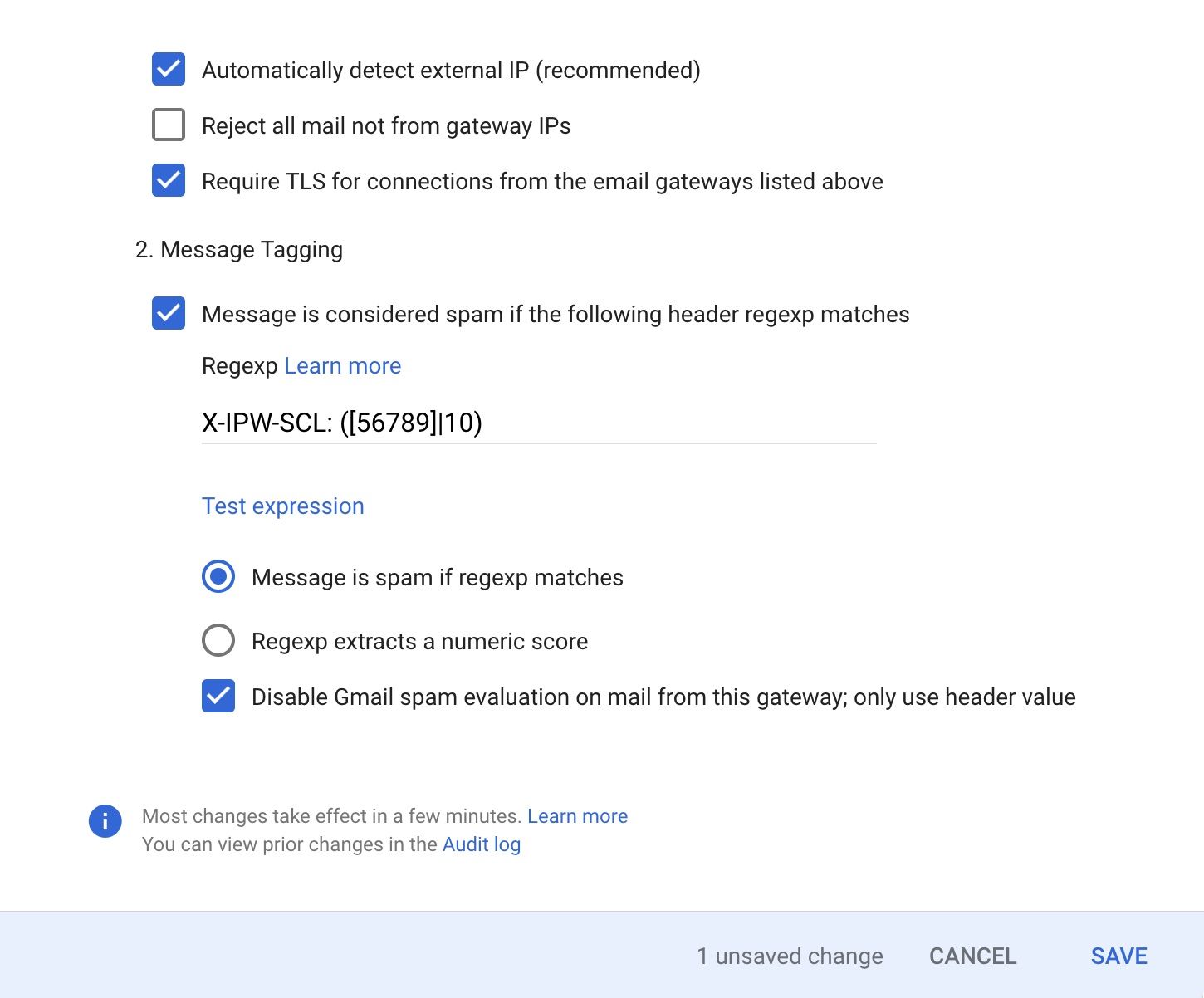 Apps → Google Workspace → Gmail → Spam, phishing, and malware → Inbound Gateway