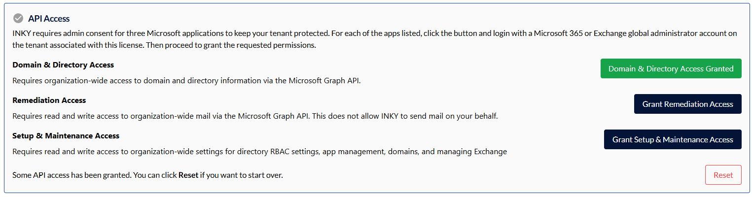 The installation process updates your mail tenant with rules and other configuration changes required to route mail through INKY for analysis.