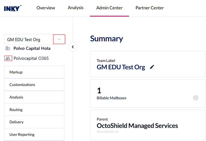 Team Configuration: INKY needs to know all the domains that send and receive mail on your team so it can analyze and relay mail correctly.