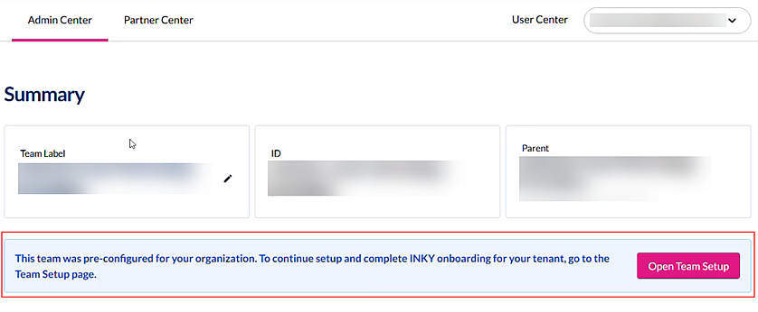 The banner indicates the team was pre-configured for your organization. Click Open Team Setup.