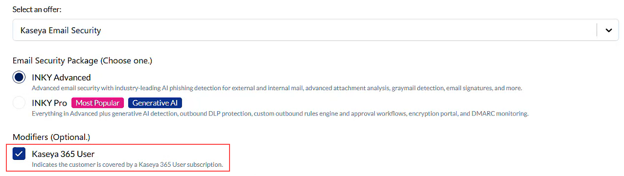 If you have a Kaseya 365 User subscription, select the Kaseya 365 User check box. If you have a standalone INKY subscription, do not select the check box.