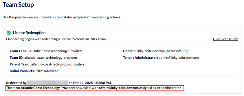 Tenant Administrator Email: The administrator must belong to the same tenant as the domain entered above. The administrator’s email address is used for authentication during setup.
